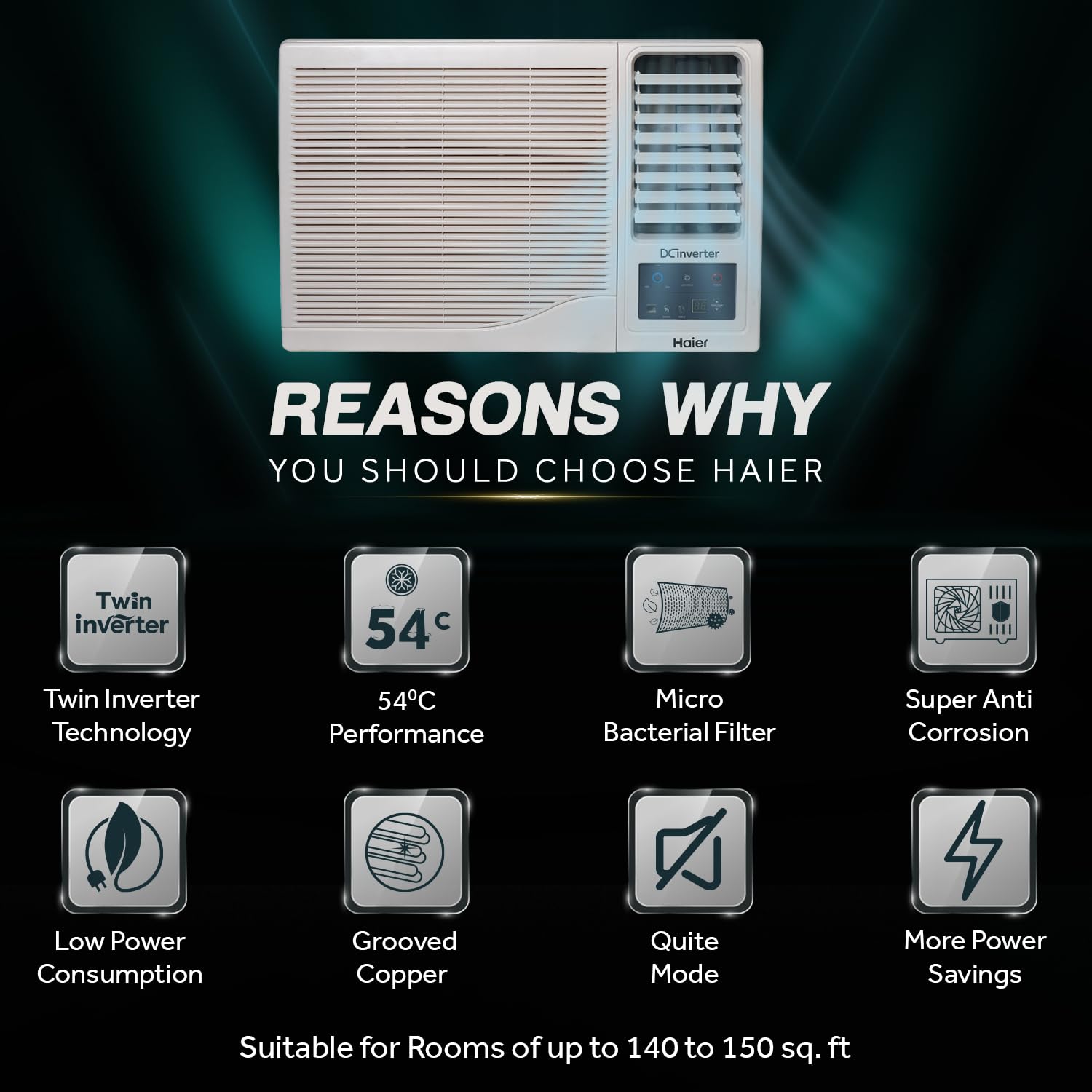 Haier 1.5 Ton 5 Star Window Inverter Air Conditioner HWU18I-AOW5BN