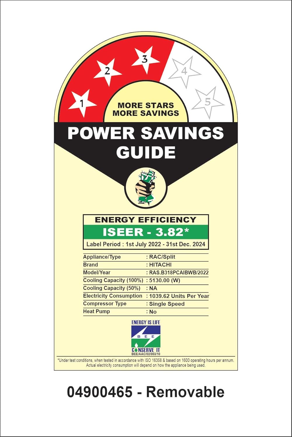 - Energy Rating : 3 Star - Best in class efficiency | Annual Energy Consumption: 1039.62 Units Per Year| ISEER Value: 3.82 The star rating is as per BEE guidelines