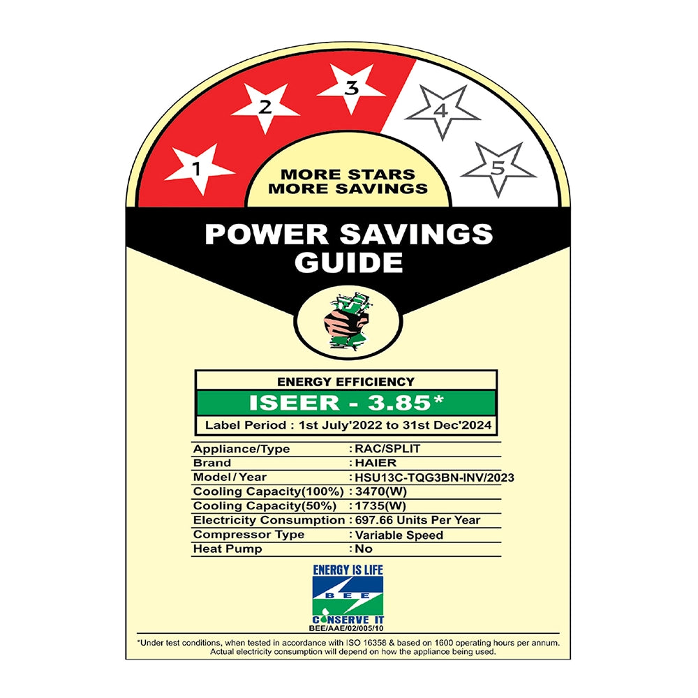 Haier 1.5 Ton 3 Star 7 in 1 convertible Inverter Split AC (Triple Inverter, 100% Grooved Copper HSU50C-TQS3BN)