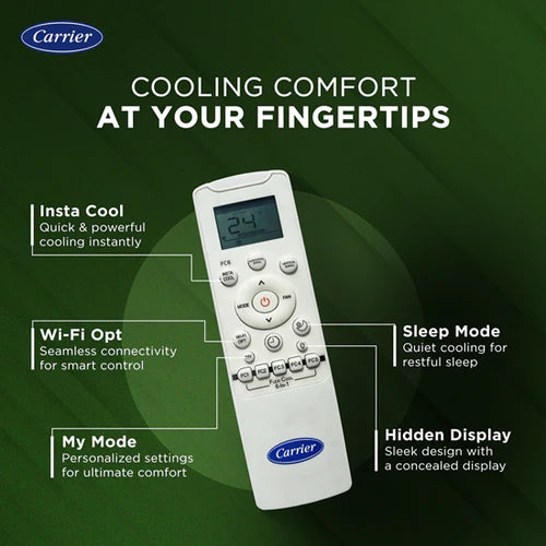 The Carrier 1.5 Ton 3 Star Inverter Split AC is built to deliver powerful cooling, energy efficiency, and advanced smart features for a more intelligent and comfortable lifestyle. Equipped with 6-in-1 FlexiCool technology, Smart Energy Display, and Hybridjet cooling system, this AC is designed to work optimally even in extreme Indian summers with ambient temperatures soaring up to 55°C.