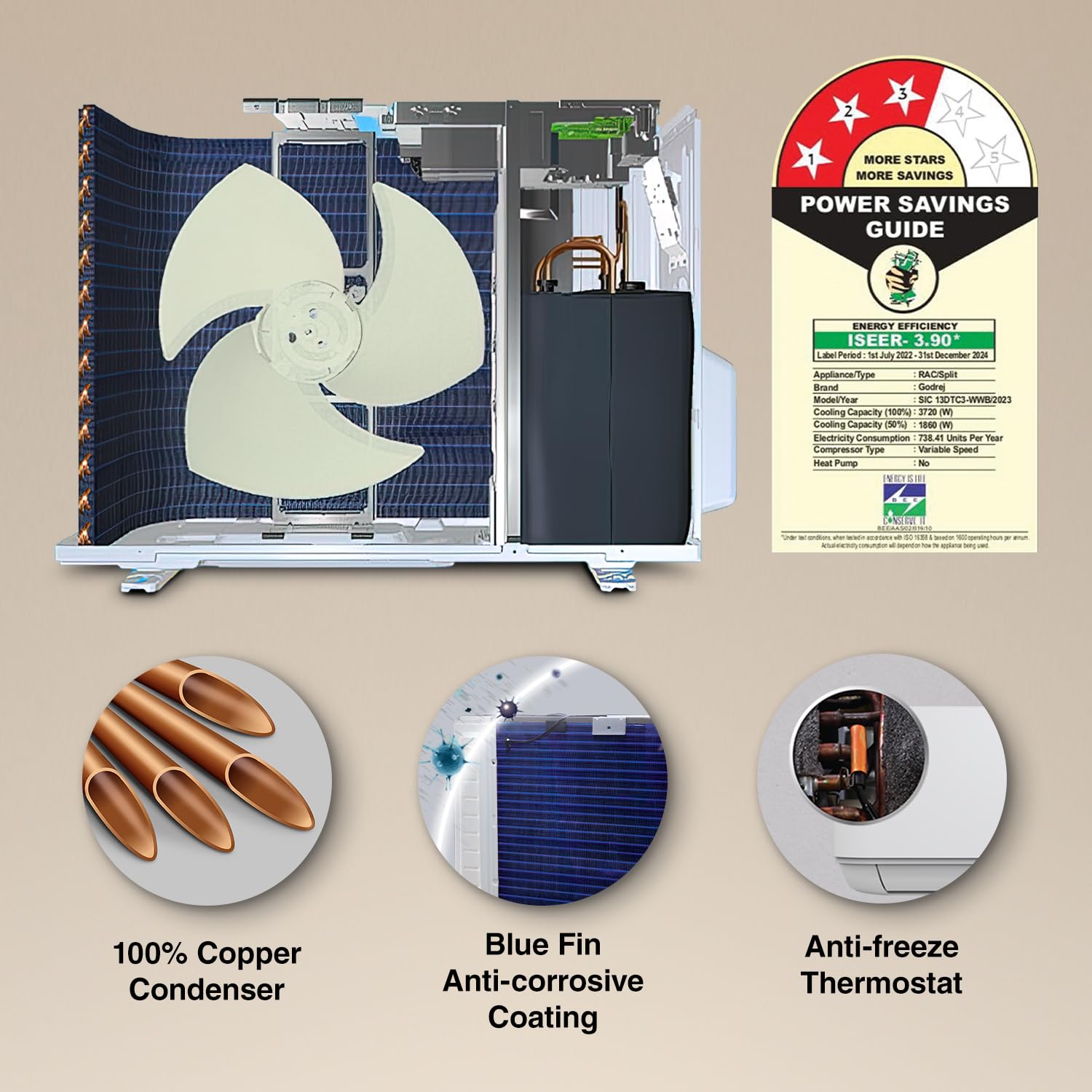 | Included Components | 1 Indoor Unit, 1 Outdoor Unit, 1 Remote Control, User manual, Warranty Card & 3m Copper wire/ Interconnecting pipe |
