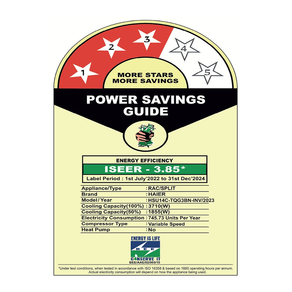 - Haier's indoor unit has the Best in class motor, optimized fan and air duct which enables the air conditioner