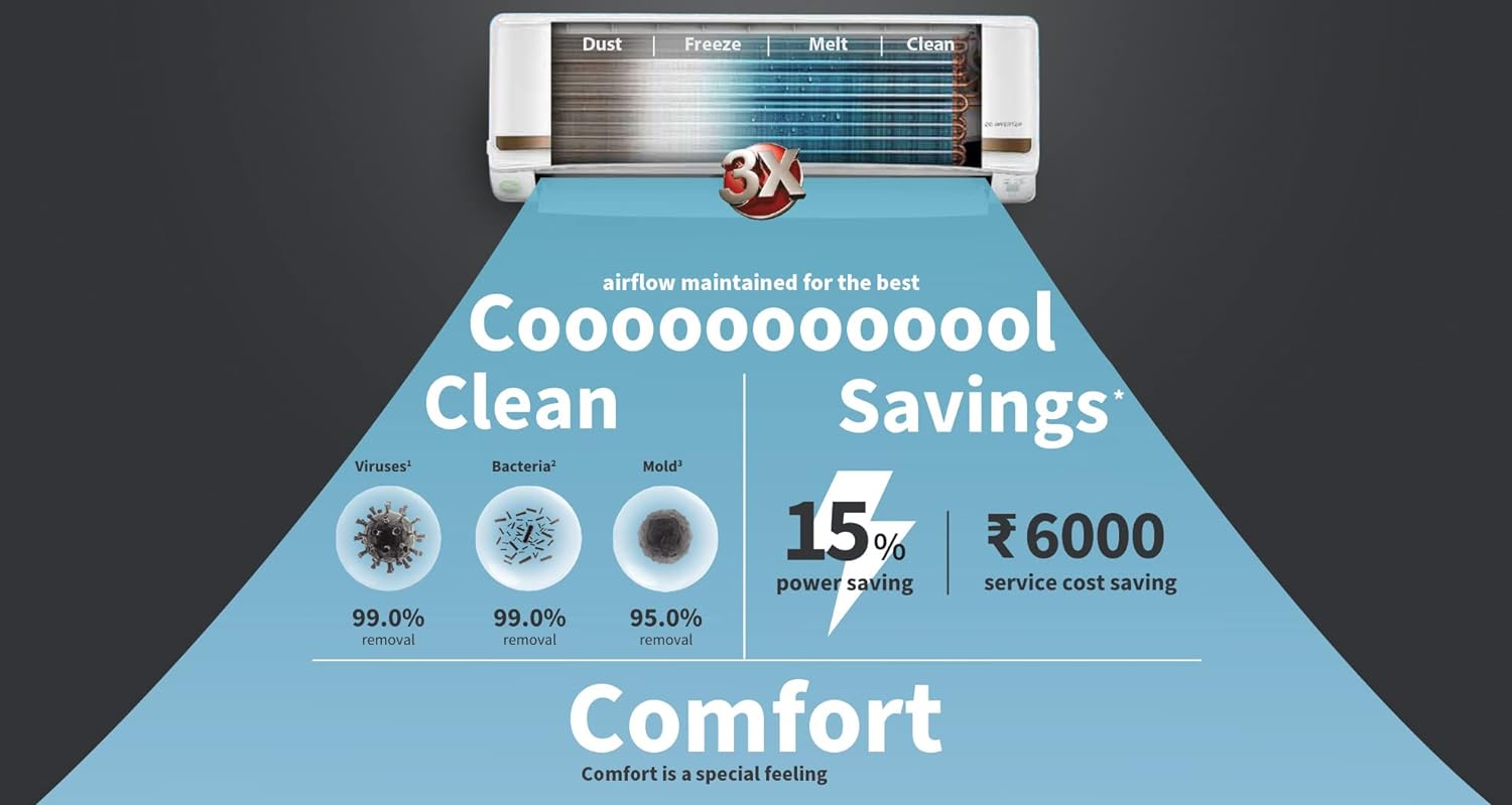 | Special Feature | Inverter Compressor, Remote Controlled, Anti Bacterial Filter, Dehumidifier, Fast Cooling |