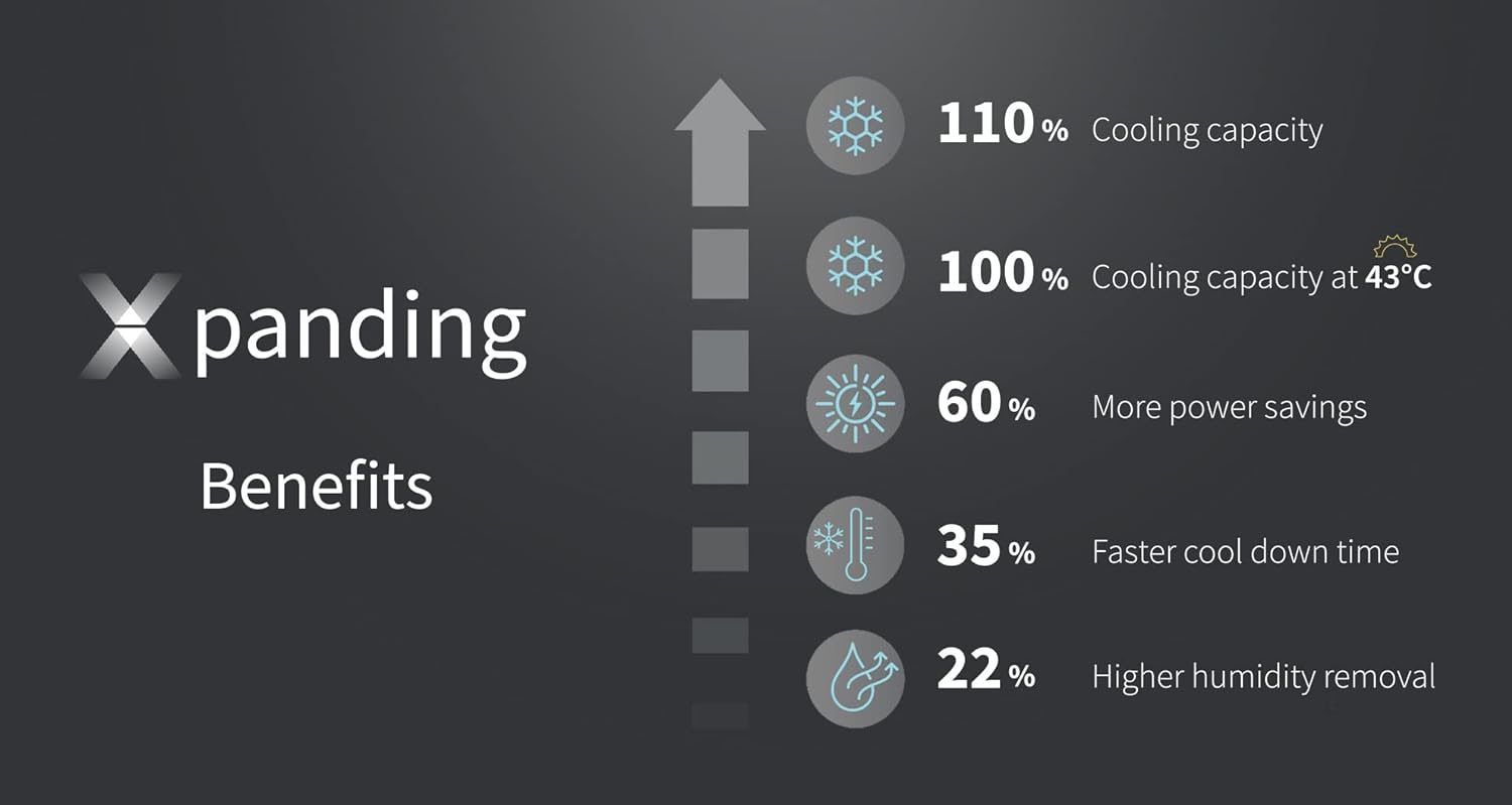 - Split AC with Inverter compressor: Variable speed compressor which adjusts power depending on heat load.