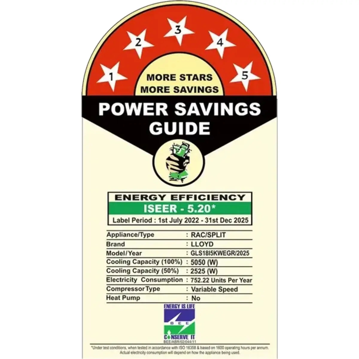 LLOYD 1.5 Ton 5 Star Inverter Split AC 5 in 1 Convertible with Anti-Viral Dust Filter (2025 Model, Copper Condenser, GLS18I5KWEGR)