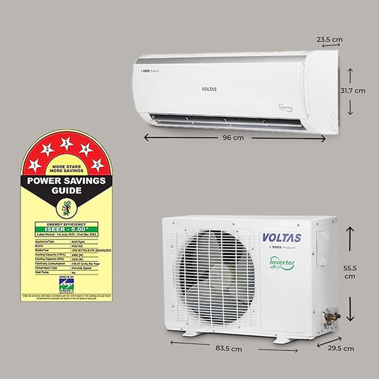 Voltas 1.5 Ton 5-Star Inverter Split AC: Copper, 2023 Model, White