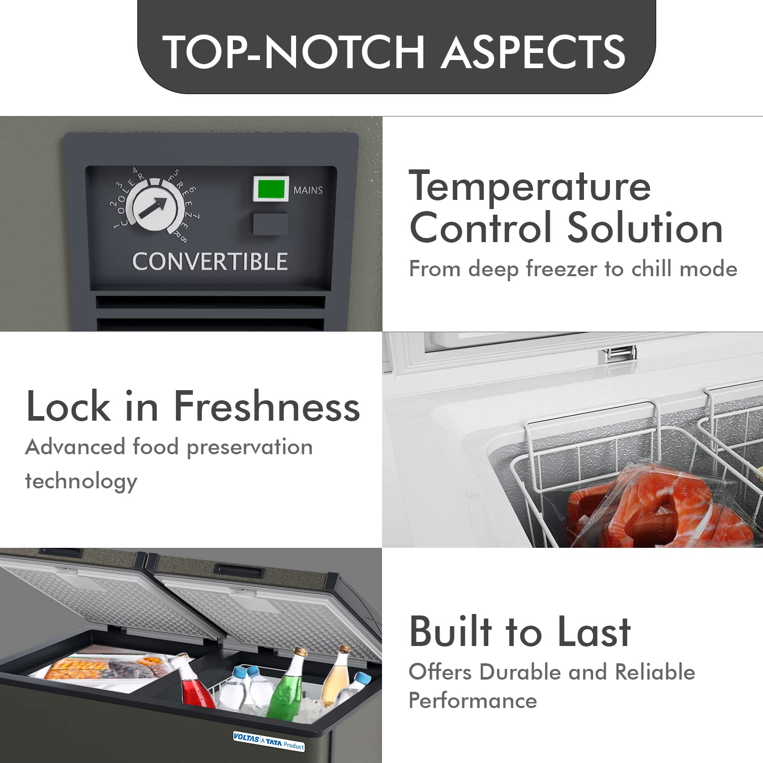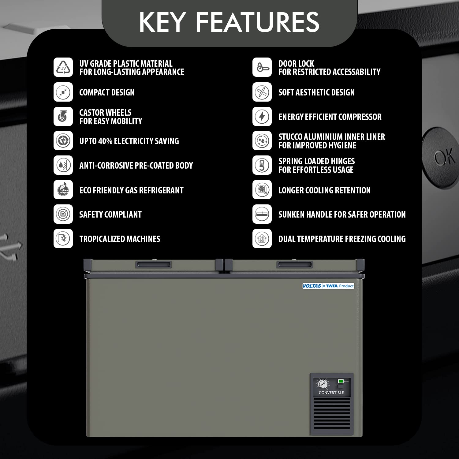 - Voltas Convertible Freezer: Easily switch between freezer and cooler modes with Voltas' convertible technology.
