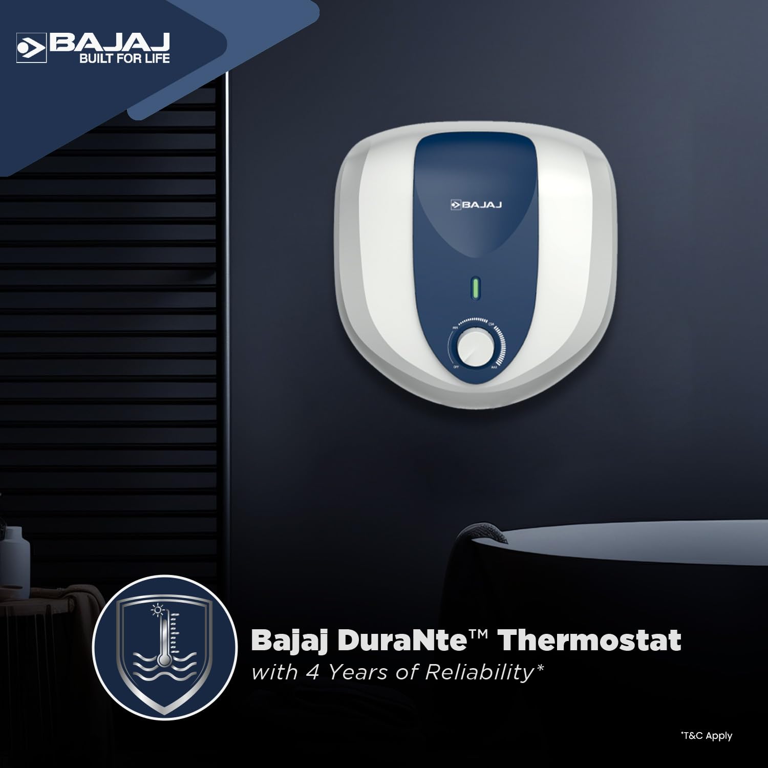 - Bajaj DuraAce Tank - Marine grade glassline coating on the tank. Bajaj DuraCoat - Non-stick heating element. Bajaj DuraNte - Ensures optimum water pressure. Bajaj Voltage Pro - Can withstand 4.5KV surge voltage. Bajaj EdgeGuard - Prevents colour fading.