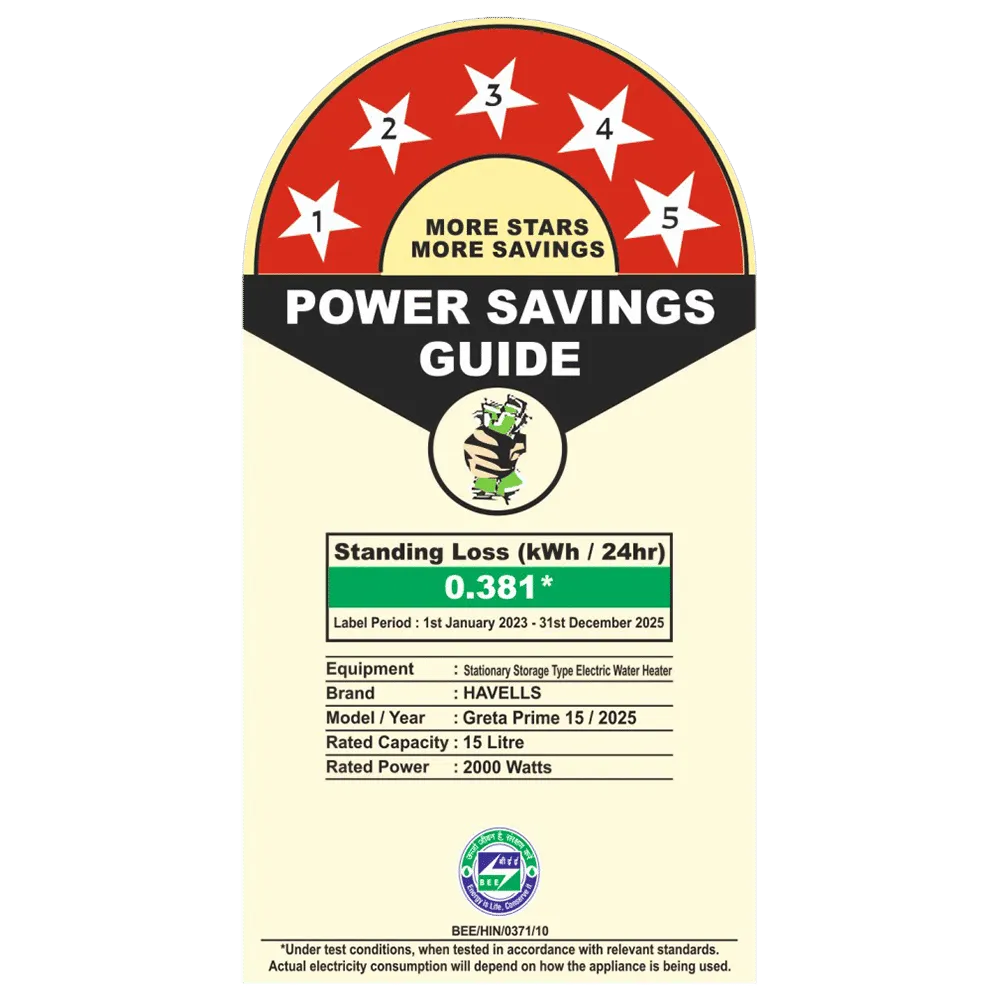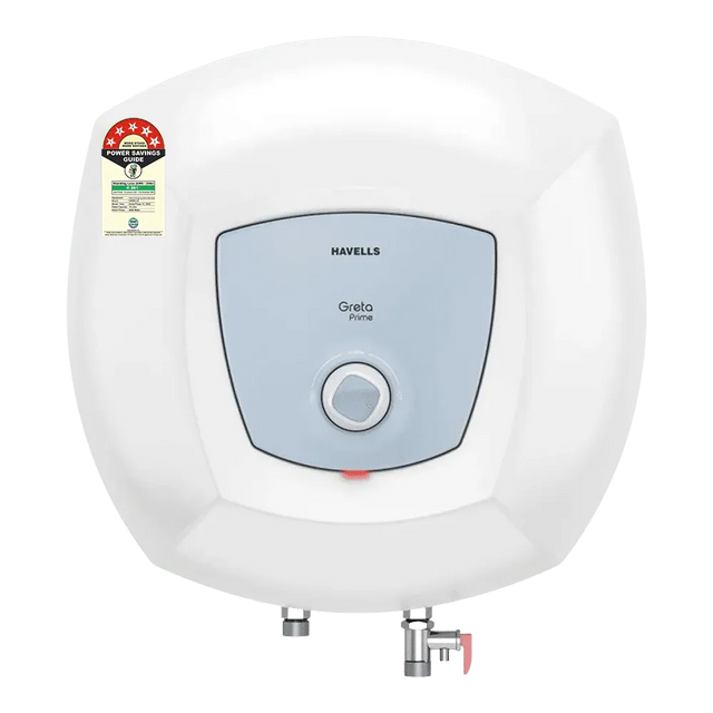 HAVELLS Greta Prime 15 Litre 5 Star Vertical Storage Geyser with Whirlflow Technology (White & Blue)