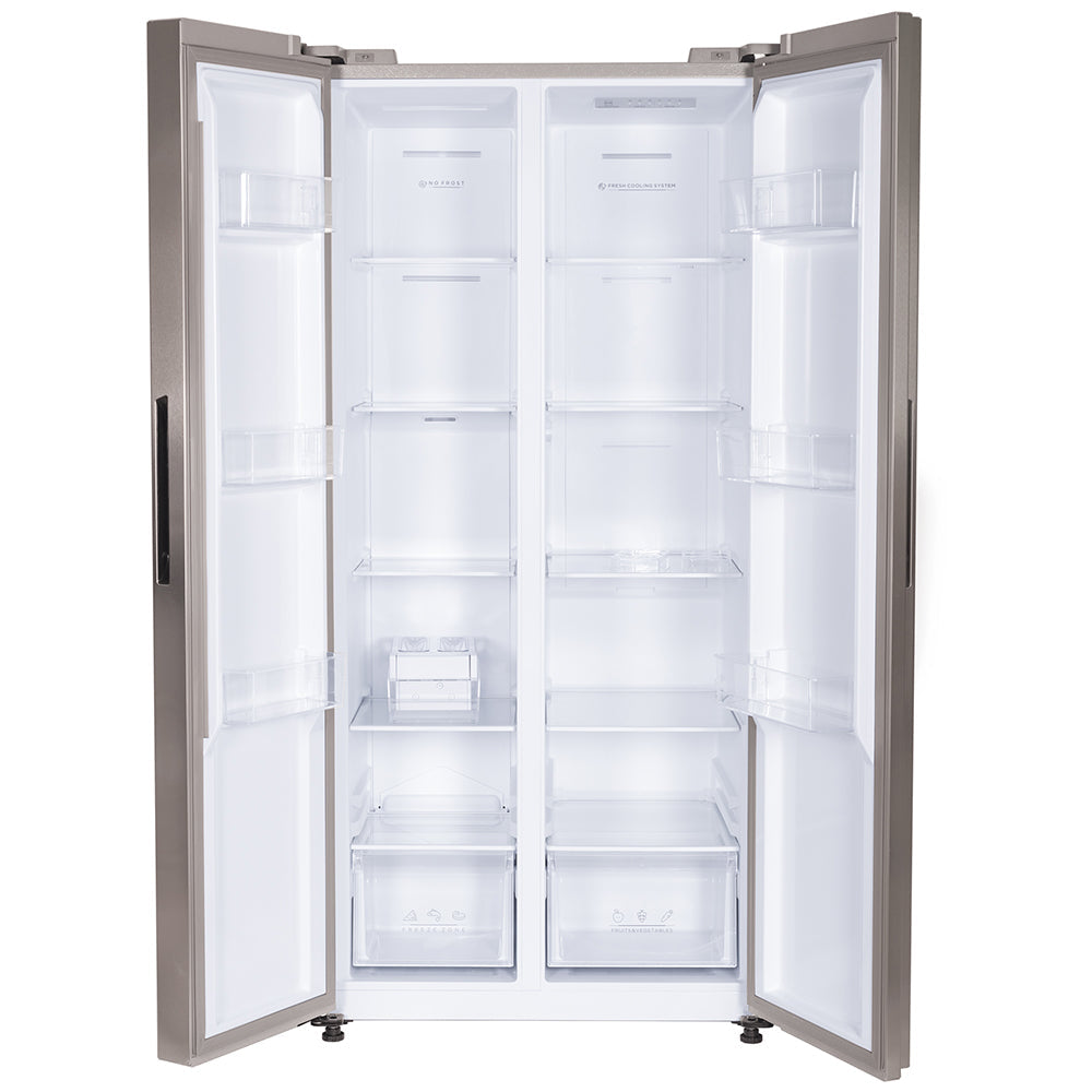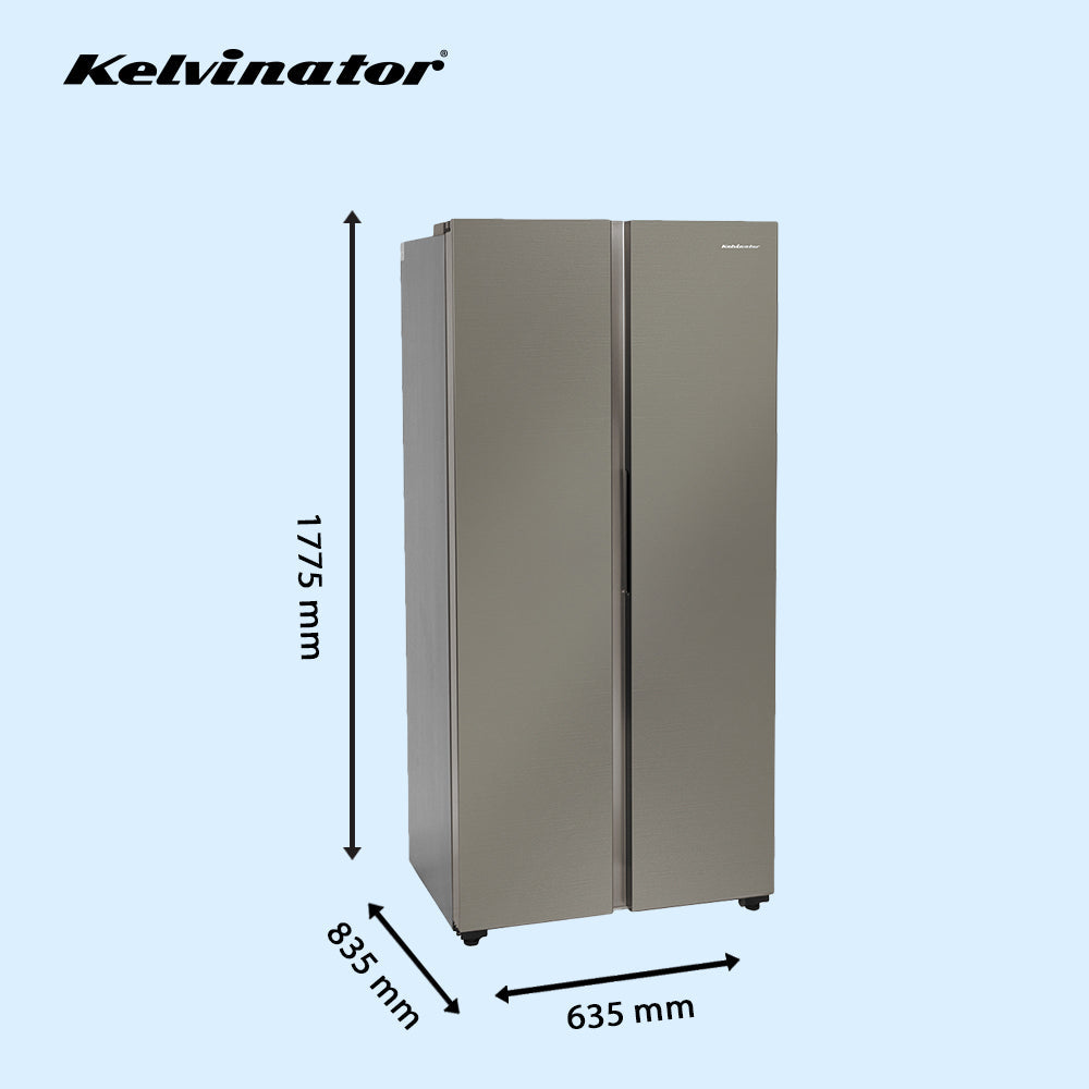 Kelvinator 500L Side-by-Side Fridge: Silver, Stabilizer Free