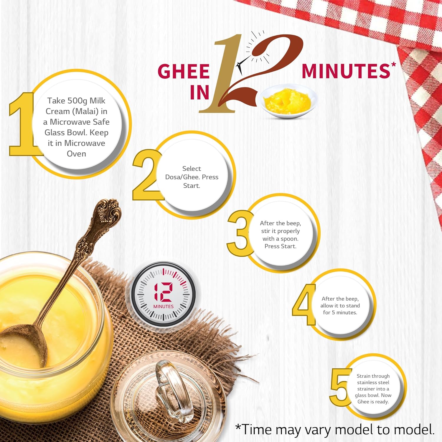 - Name of Program & Panel details: Low Calorie, Tandoor se, Kids Delight, Steam Cook, India Cuisine, Ghee / Bakery, Tea / Dairy Delight, Paneer / Curd, Cooking Aid | Cooking Mode – Micro, Grill, Conventional, Combination, Steam Clean