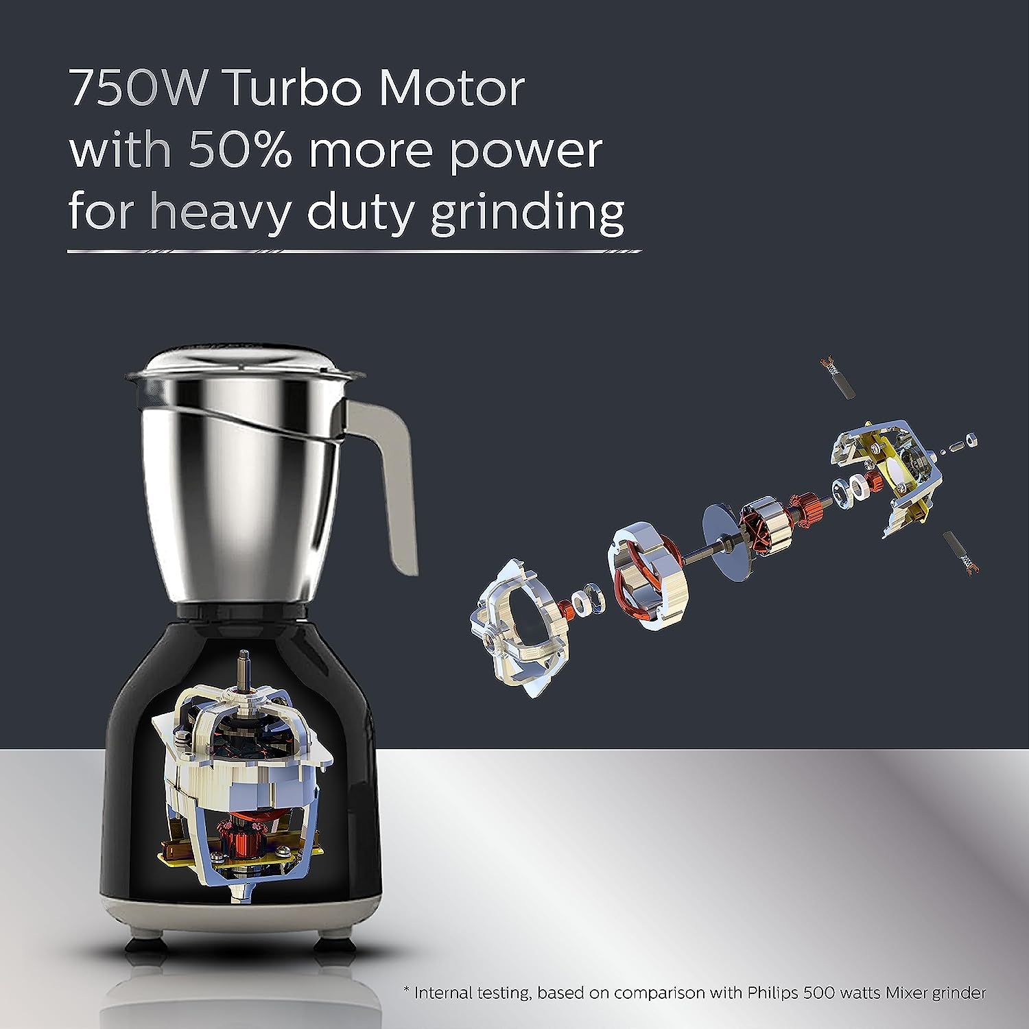 Philips Mixer Grinder : 750W, 3 SS Jars, Black HL7756/00