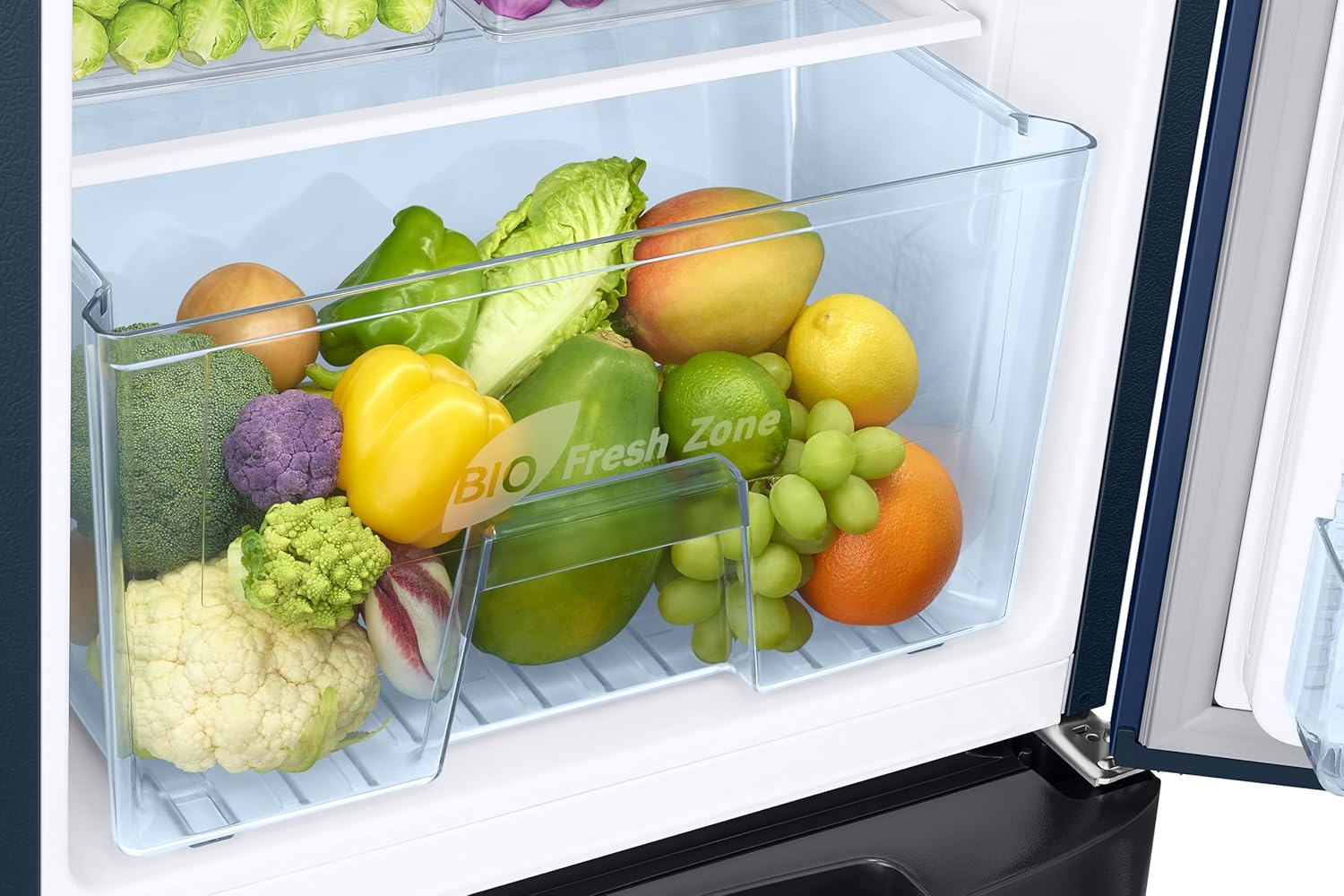 Samsung 183 L, 5 Star, Digital Inverter, Direct-Cool Single Door Refrigerator (RR20D2825CU/NL, Camellia Blue, Base Stand Drawer)