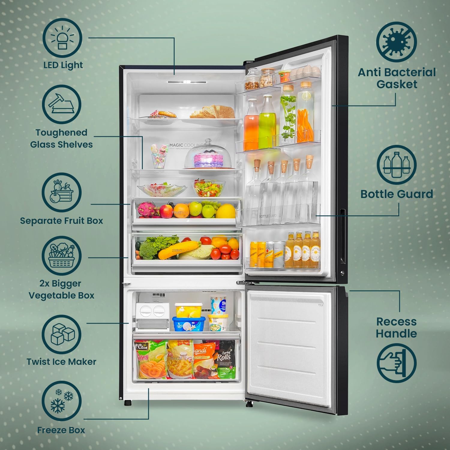 | Special Features | Inverter Compressor, Frost Free, Adjustable Shelves |