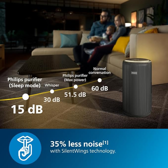 - QUIET AND EFFICIENT - Quiet, even at maximum power Experience 50% less noise with SilentWings technology giving you purification with sound as low as 15dB