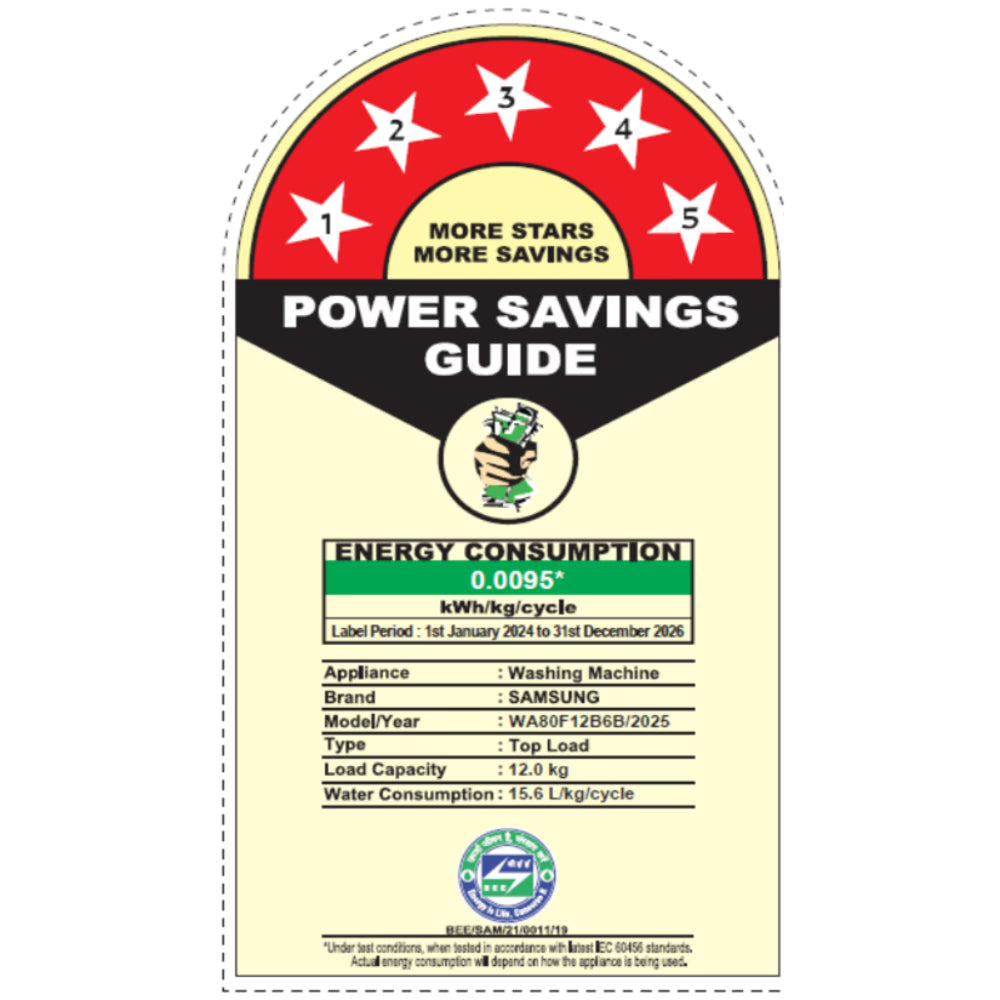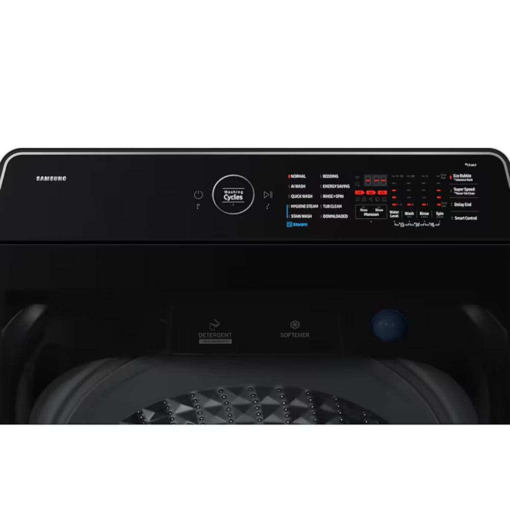 Samsung 12 kg 5 Star AI Wash Top Load Washing Machine with Heater, Eco Bubble, BubbleStorm, Dual Storm Pulsator, Soft Close Lid, Black Caviar (WA80F12B6B, 2025 Model)