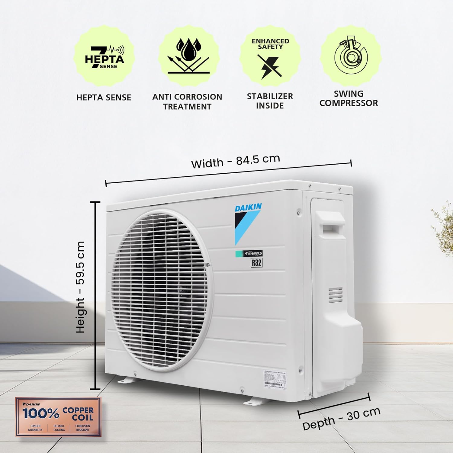Daikin 1.5 Ton 3 Star Inverter Split AC | Copper Condenser | PM 2.5 & Apatite Filter | Model ATKL50UV16VAF | White