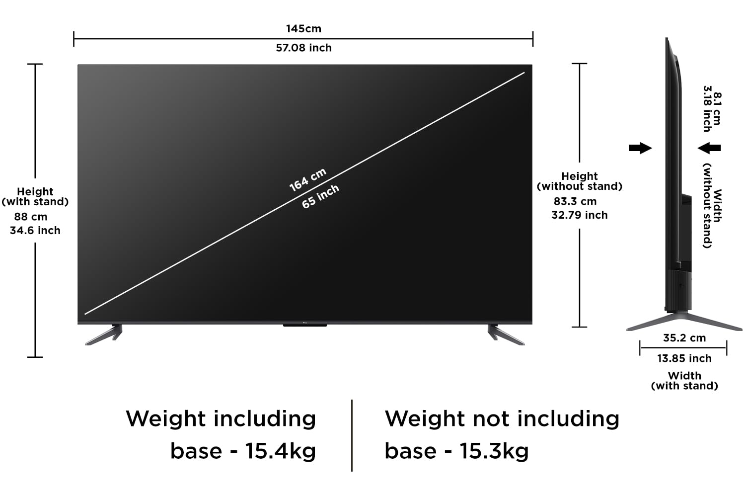 • Display: QLED | 178 Degree Wide Viewing Angle | Dolby Vision & HDR 10+ | 4K HDR Pro| AIPQ 3.0 Engine | MEMC
