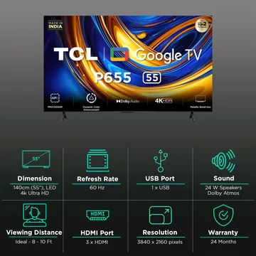 TCL P655 140 cm (55 inch) 4K Ultra HD LED Google TV with Dolby Audio (2024 model)
