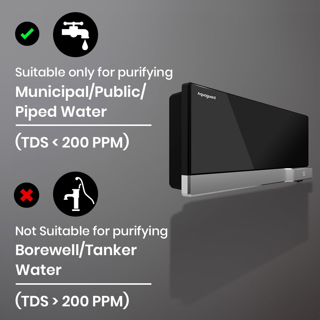 Aquaguard Slim Glass UV Bar Inline Water Purifier | Instant | Water Quality Indication | Active Copper Tech | Suitable for Municipal Water, Not Suitable for Borewell/Tanker Water