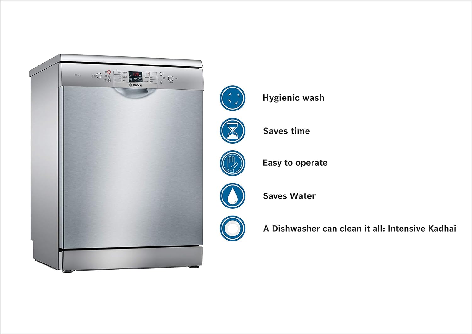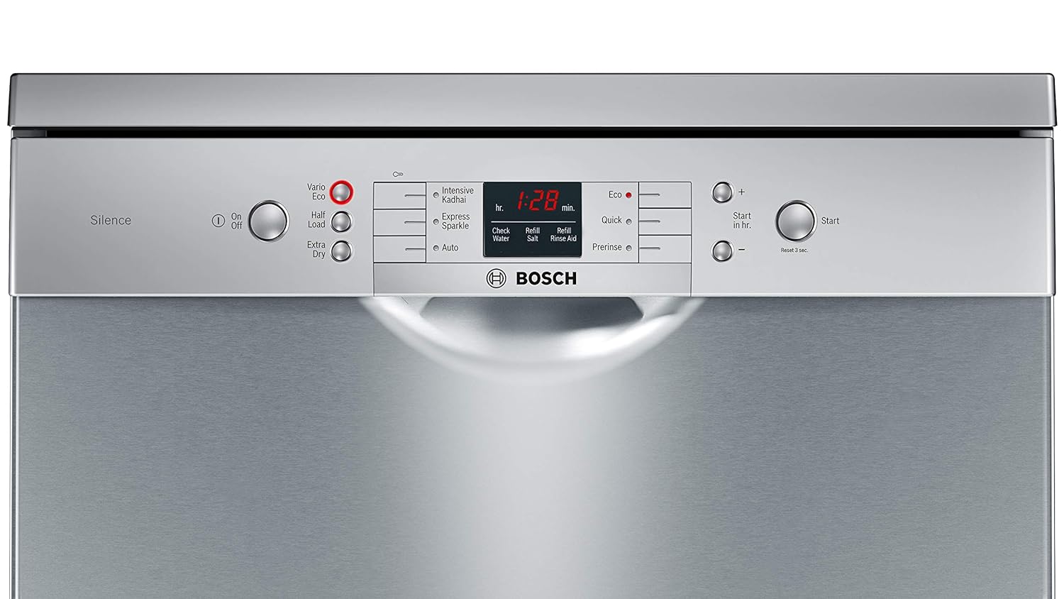 - IndianKitchenKaDishwasher - This Bosch dishwasher is designed for Indian Kitchens as it can easily fit all type of utensils and clean them. No need to manually pre-rinse utensils before loading in dishwasher.