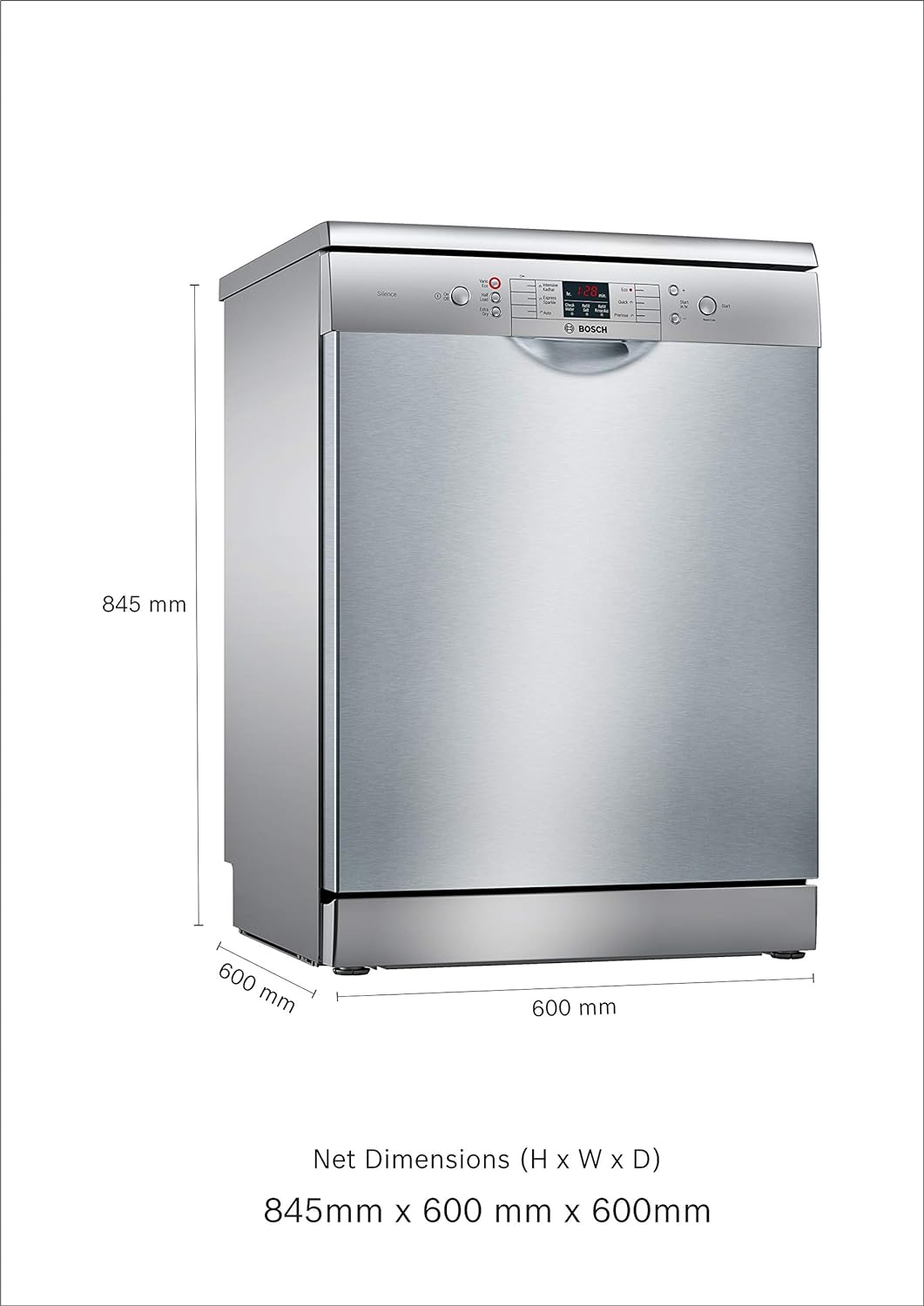 Bosch 13 Place Settings, Free Standing Dishwasher (SMS66GI01I, Silver Inox), extra dry and hygienic wash