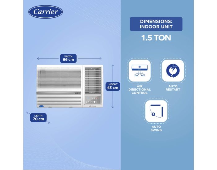 One of the standout features of the Estrella EXi Window AC is its Hydro Blue Coating, a cutting-edge protective layer that enhances its durability and shields it from corrosion. This coating extends the lifespan of the AC, ensuring consistent and optimal performance for years to come. The AC is built to withstand the test of time, providing uninterrupted comfort and peace of mind.