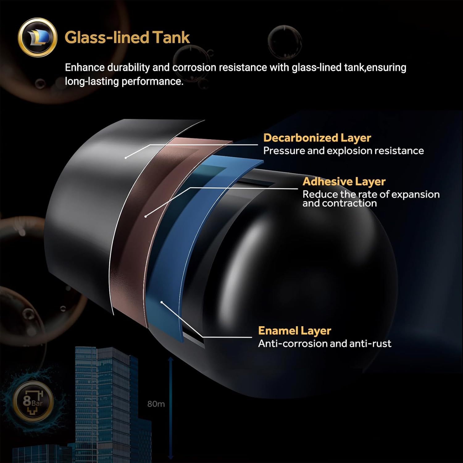 - Glass-lined Tank: Enhance durability and corrosion resistance with a glass-lined tank, ensuring long-lasting performance.