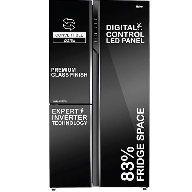 Haier 598 L, 3 Star, 83% Convertible Fridge Space, Expert Inverter, Frost Free Side by Side Refrigerator, (HRT-683KG, Black Glass)