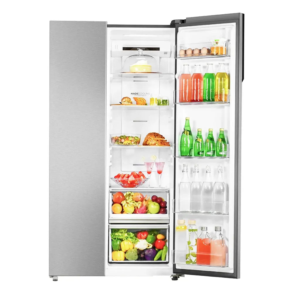Haier 602 L Side-by-Side Refrigerator with 3 Star, Frost Free, WiFi Enabled, Stabilizer Free Operation (HRS-682SSU1, Shiny Steel)