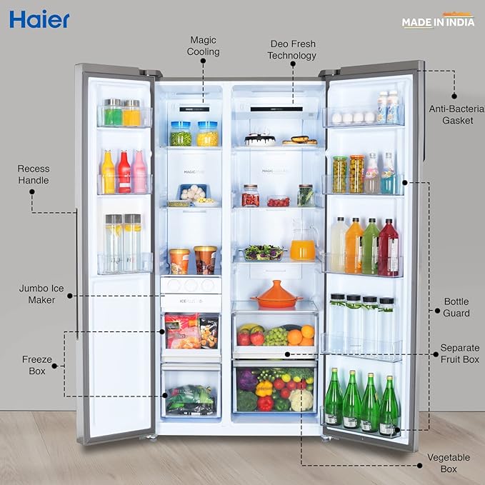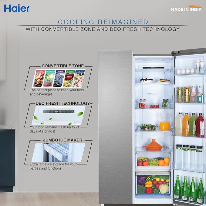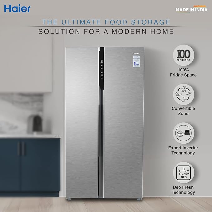 Haier 630L Inverter Side-by-Side Refrigerator (Inox Marine, Convertible)