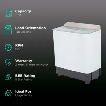 Haier 7.0 Kg Twin Tub Semi Automatic Top Loading Washing Machine (HTW70-178N)