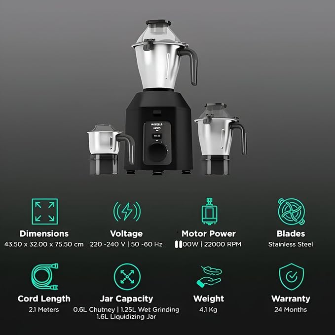 Havells Hexo Plus1100 Watt 3 Jar Mixer Grinder I 2.5 Kg Double Ball Bearing Copper Motor I 22000 RPM I 100 Minute Run Time I Metal Teeth Coupler and Jar Base I Black is backordered and will ship as soon as it is back in stock.