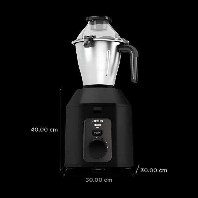 Havells Hexo Plus1100 Watt 3 Jar Mixer Grinder I 2.5 Kg Double Ball Bearing Copper Motor I 22000 RPM I 100 Minute Run Time I Metal Teeth Coupler and Jar Base I Black