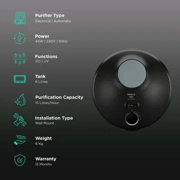 HAVELLS LOOP 6L RO + UV + Alkaline Water Purifier with Hygienic Flow Control (Hydro Grey)
