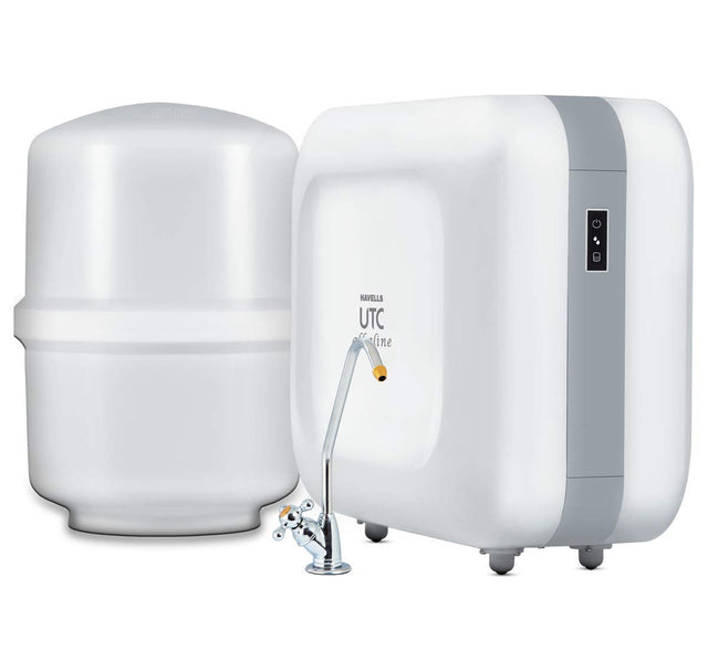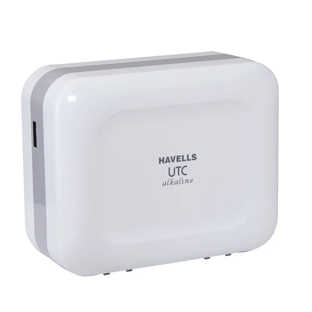 Havells UTC Alkaline 8L Water Purifier, 360-degree rotation Faucet, Cu+Zn+natural minerals, 8 stage Purification, Plasto-Steel tank, RO+UV, (Grey & White), Suitable for Borwell,tanker, municipal water