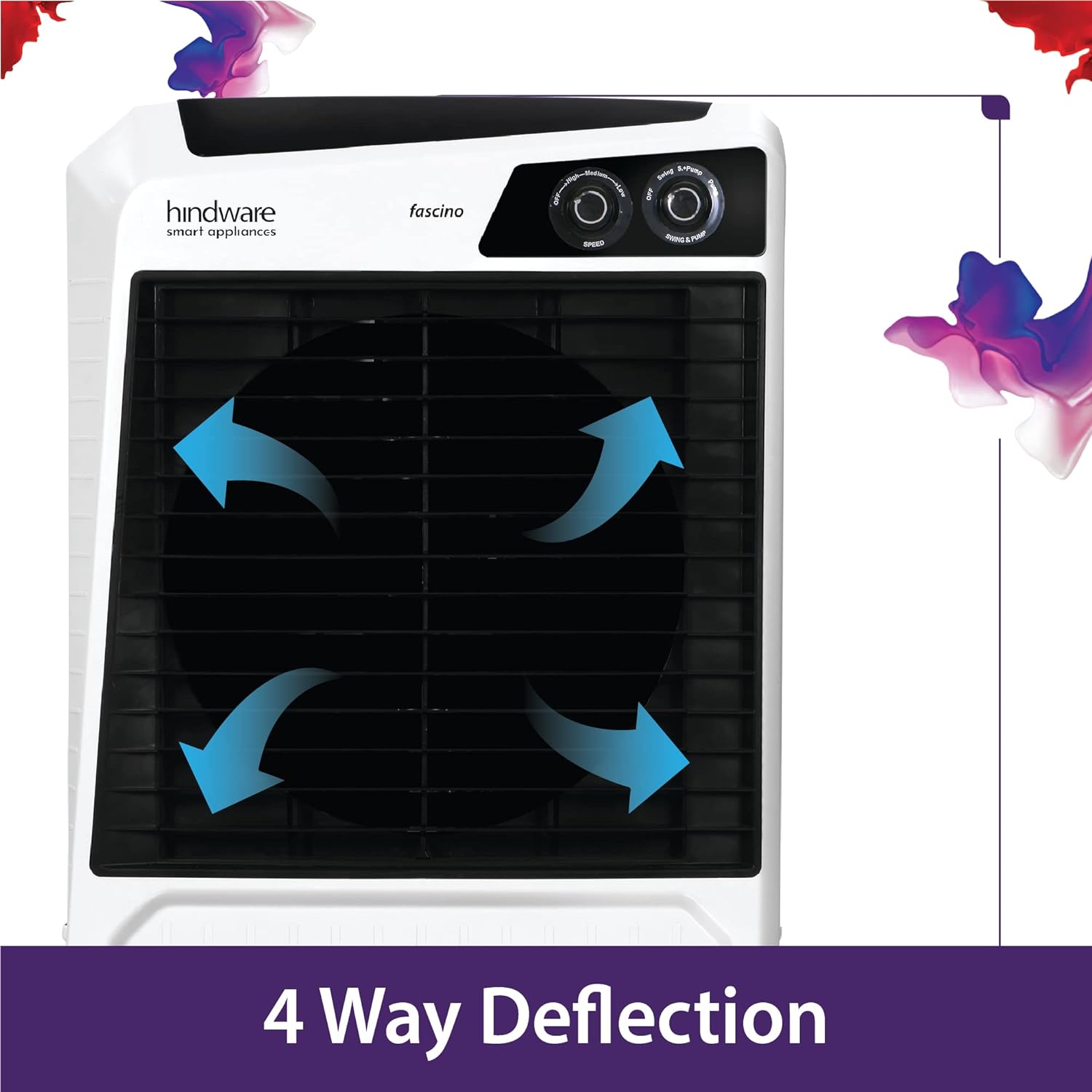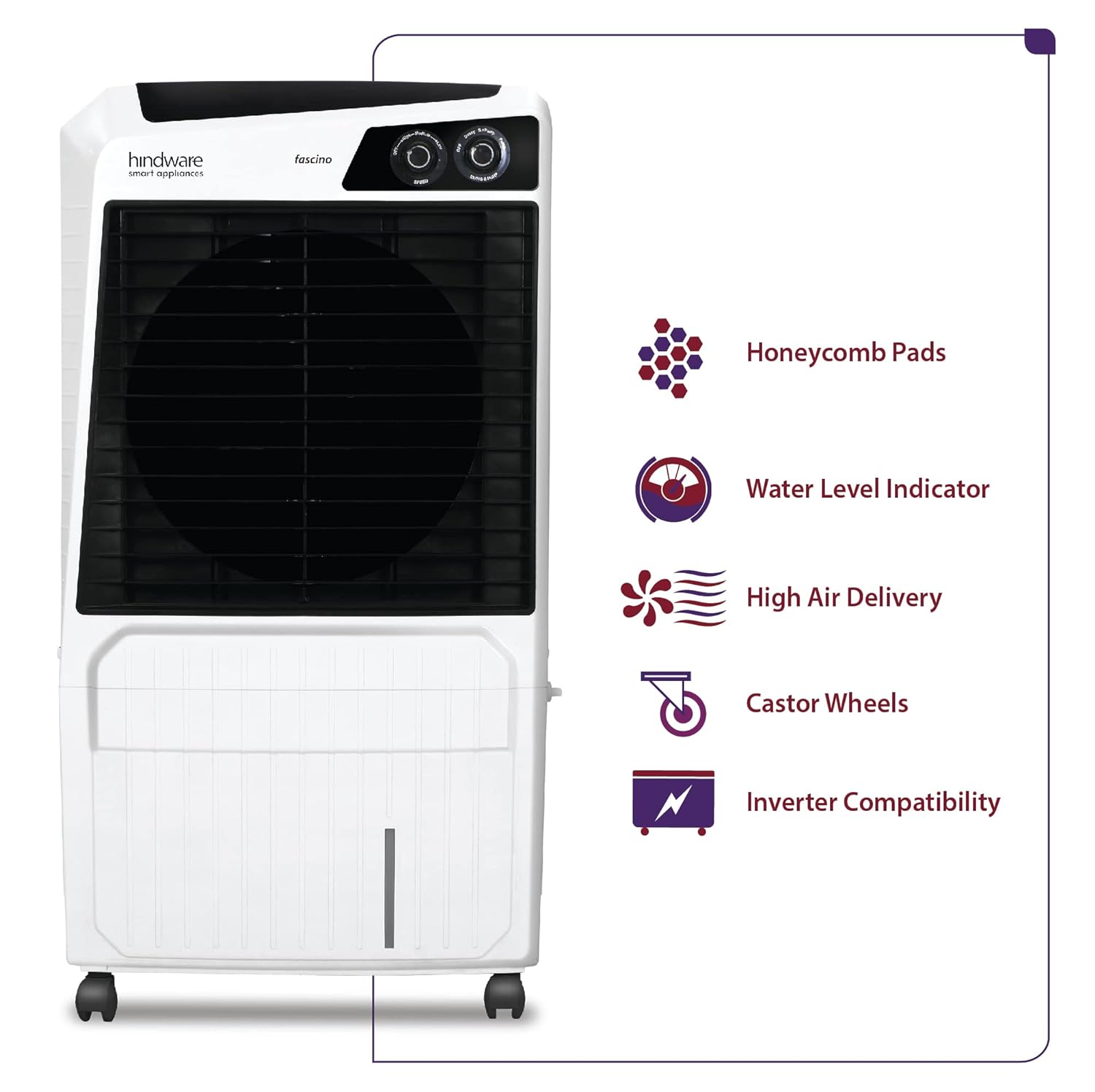 Hindware Smart Appliances Fascino 100L Desert Air Cooler with Honeycomb Pads, Inverter Compatible, Castor wheels with High Air Delivery (Black & White)