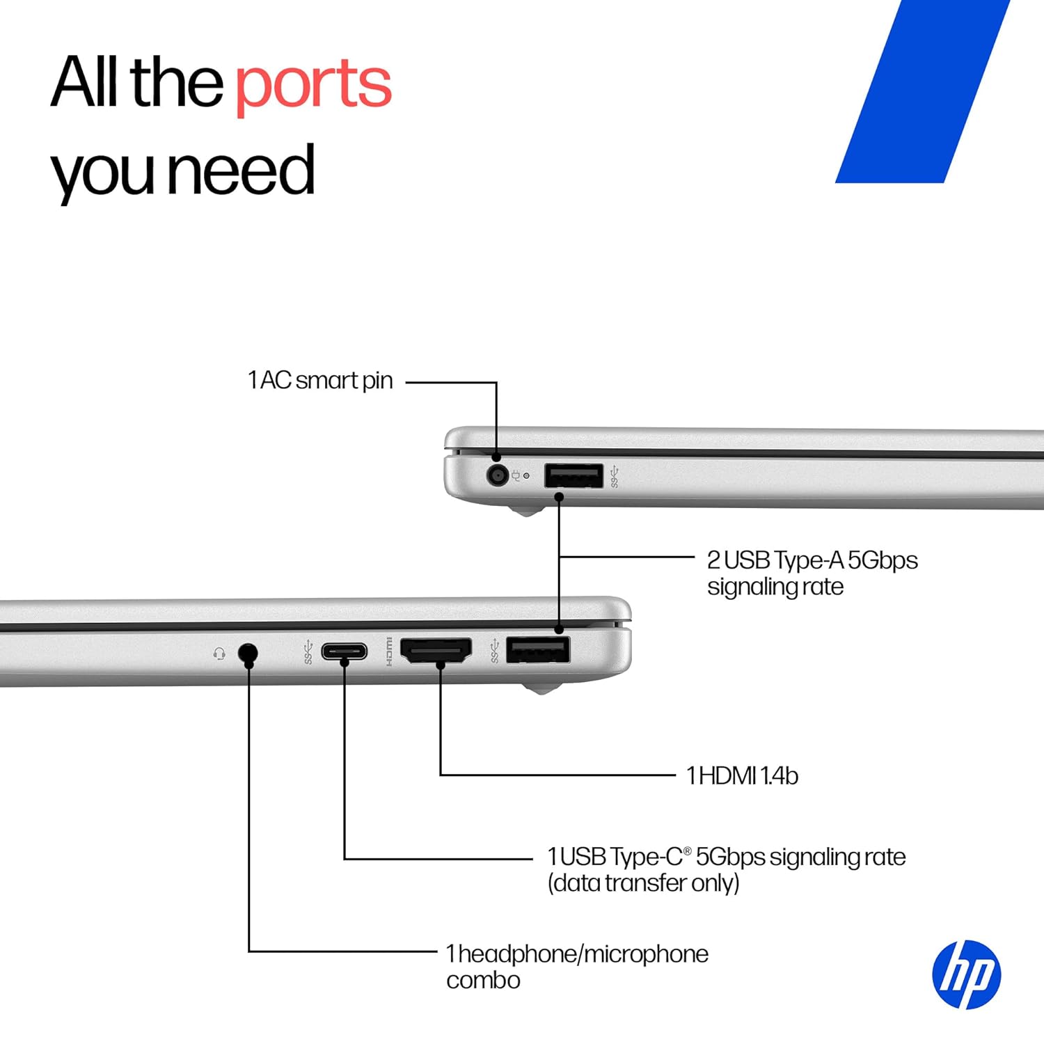 HP 14, 13th Gen Intel Core i3-1315U Laptop (8GB DDR4,512GB SSD) Anti-Glare, Micro-Edge, 14/35.6cm, FHD, Win11, M365 Basic(1yr),Office Home24, Silver,1.4kg, FHD Camera w/Privacy Shutter, EP0341TU