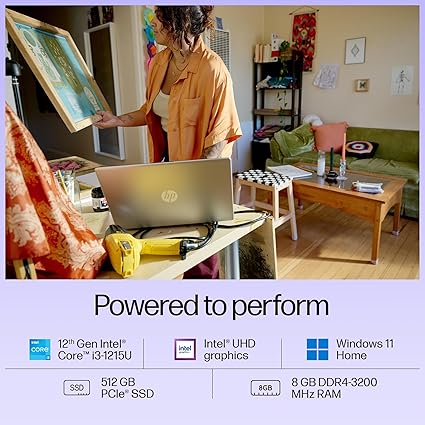 HP 15 Intel Core i3 12th Gen (8GB DDR4 RAM/ 512 GB NVMe M.2 SSD/Windows 11 / MS Office'2021 / FHD 15.6" (39.6 cm) / Silver / 1.59 kg/Dual Speakers) FD0061TU