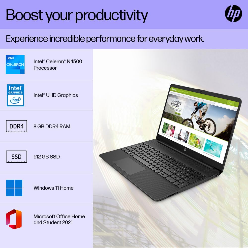HP 15s - Celeron N4500, 8GB RAM, 512GB SSD, 15.6", Win 11, Jet Black (HP LAPTOP 15S-FQ3066TU)