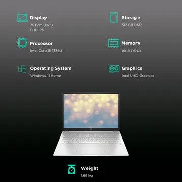 HP Pavilion 14-ek1074TU Intel Core i5 13th Gen (14 inch, 16GB, 512GB, Windows 11 Home, MS Office 2021, Intel UHD, FHD IPS Display, Natural Silver, 8C5H5PA)
