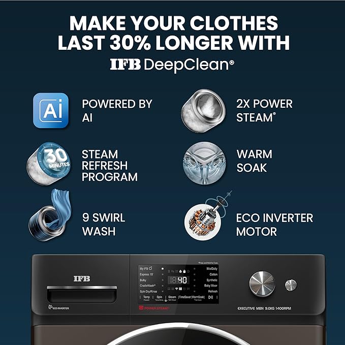 IFB 9Kg 5 Star with Deep Clean Technology, AI Powered, Fully Automatic Front Load Washing Machine (Executive MBN 9014K, Steam Refresh Program, Eco Inverter, Wi-Fi, Mocha)