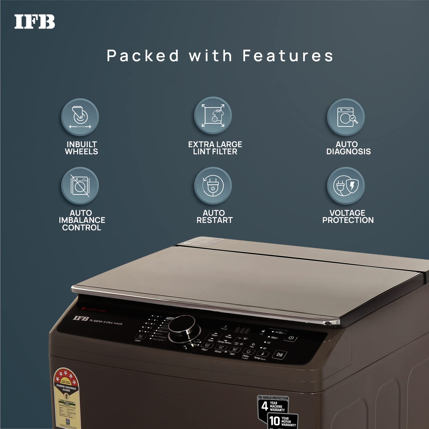 | Special Features | Aqua Energie, Aqua Conserve, Protective Rat Mesh, Lint Tower Filter, Child Lock, Machine Level Indicator, Programe Memory Backup, Hard Water Wash, Auto Imbalance System, High Low Voltage Protection, Active Colour Protection, 3D Wash System |