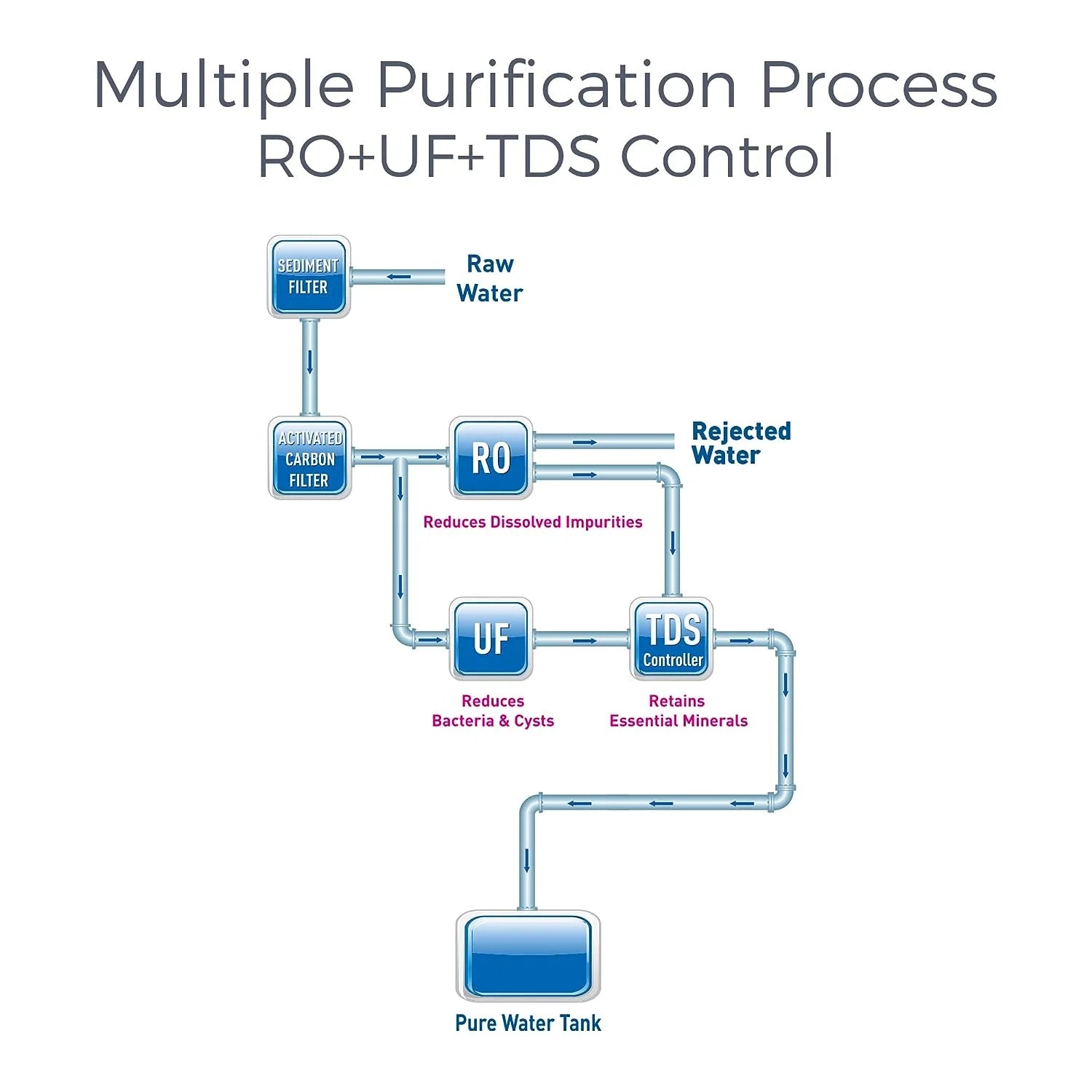 - RO + UV + UF + TDS Control + UV in Tank