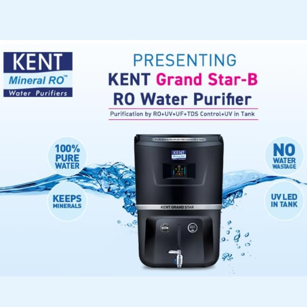 KENT Grand Star-B RO+UV+UF+TDS Control+UV In-tank, and Zero Water Wastage Technology black