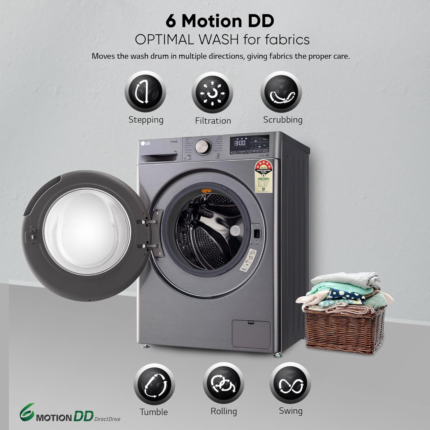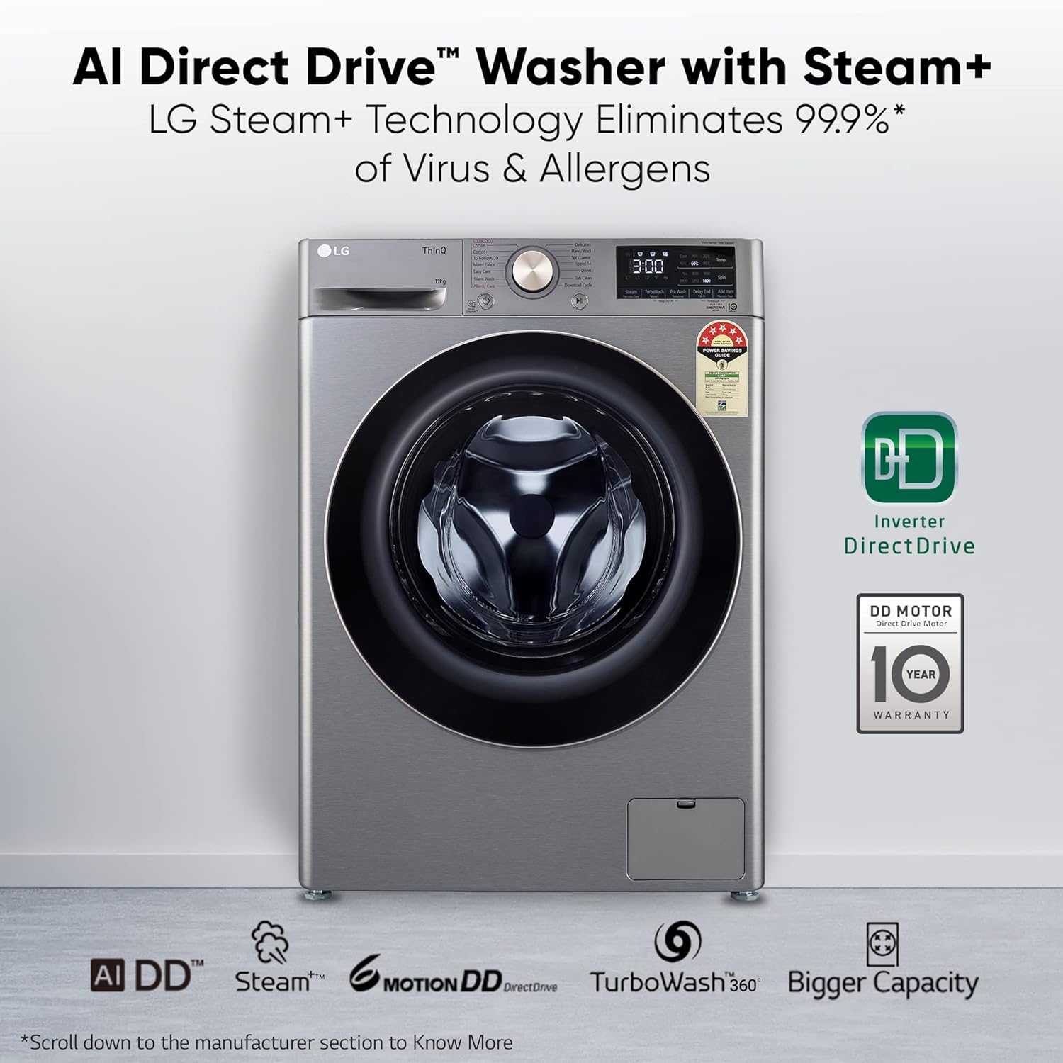 LG 11kg Front Load Washer, AI Direct Drive™, Platinum Silver WM FHP1411Z9P