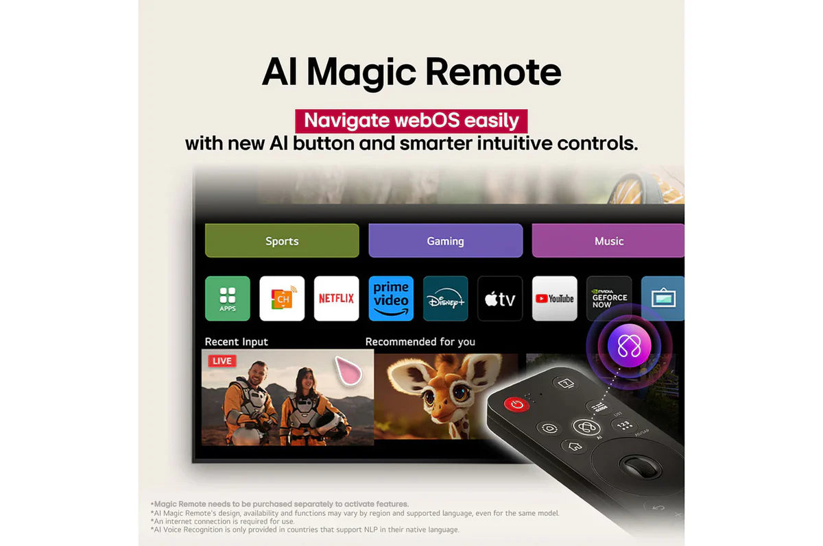 Enjoy stunning visuals with lifelike detail and vibrant color accuracy, even on lower-resolution content. HDR10 and LG’s Super Upscaling technology boost brightness and depth across all content types.