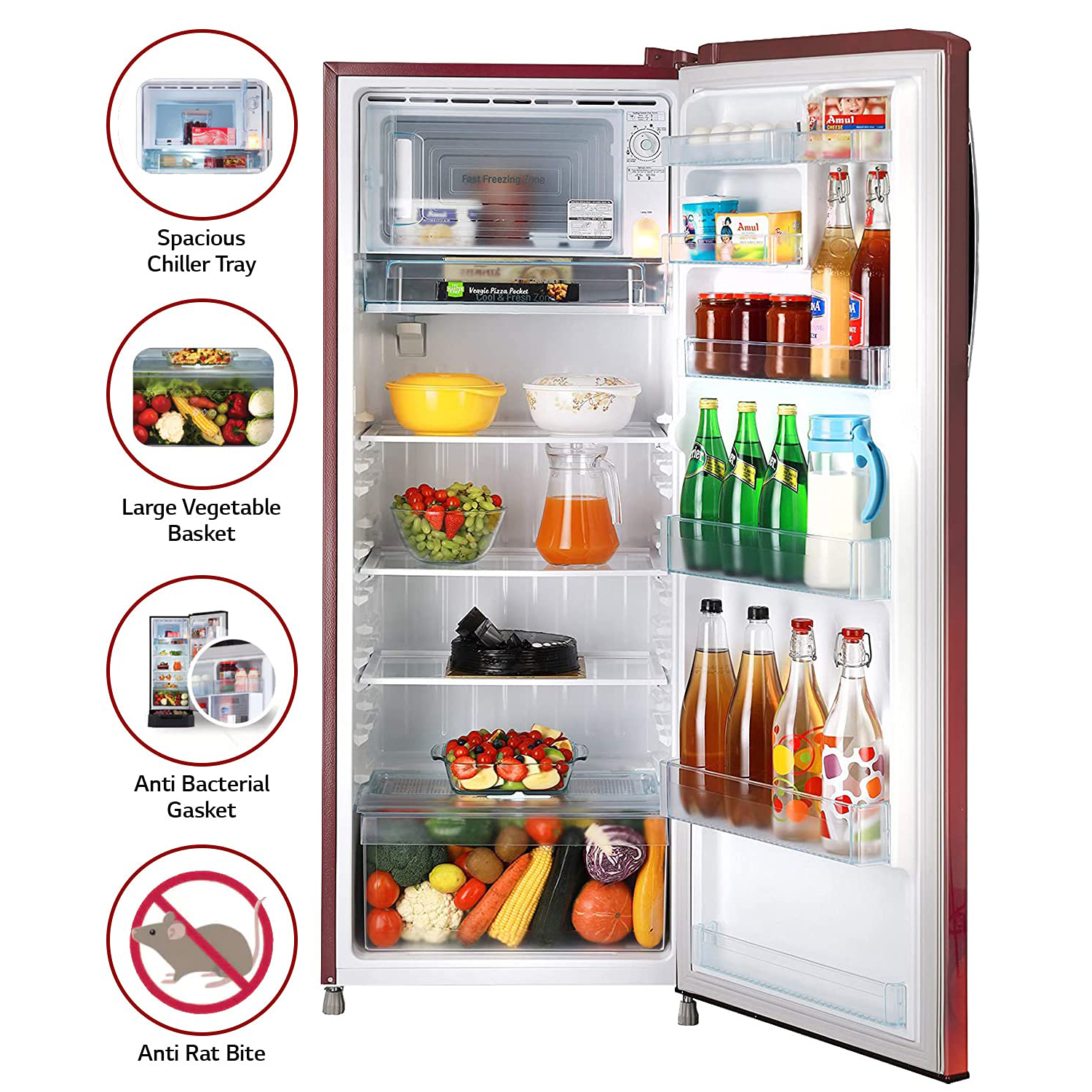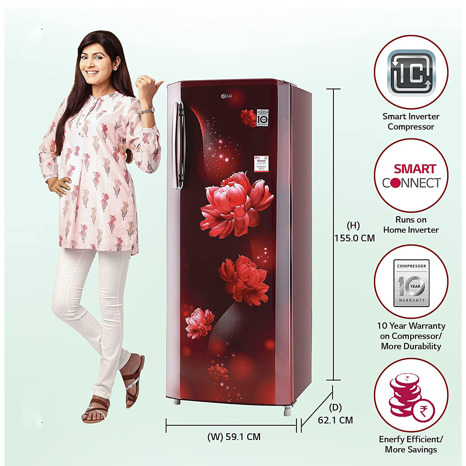 LG 270L Single Door Fridge: Scarlet Charm, 3 Star, Inverter, 2022 Model GL-B281BSCX