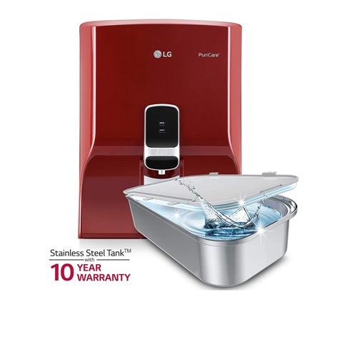 LG 8L RO Purifier: Dual Protection SS Tank, Wall Mount, Red WW130NP