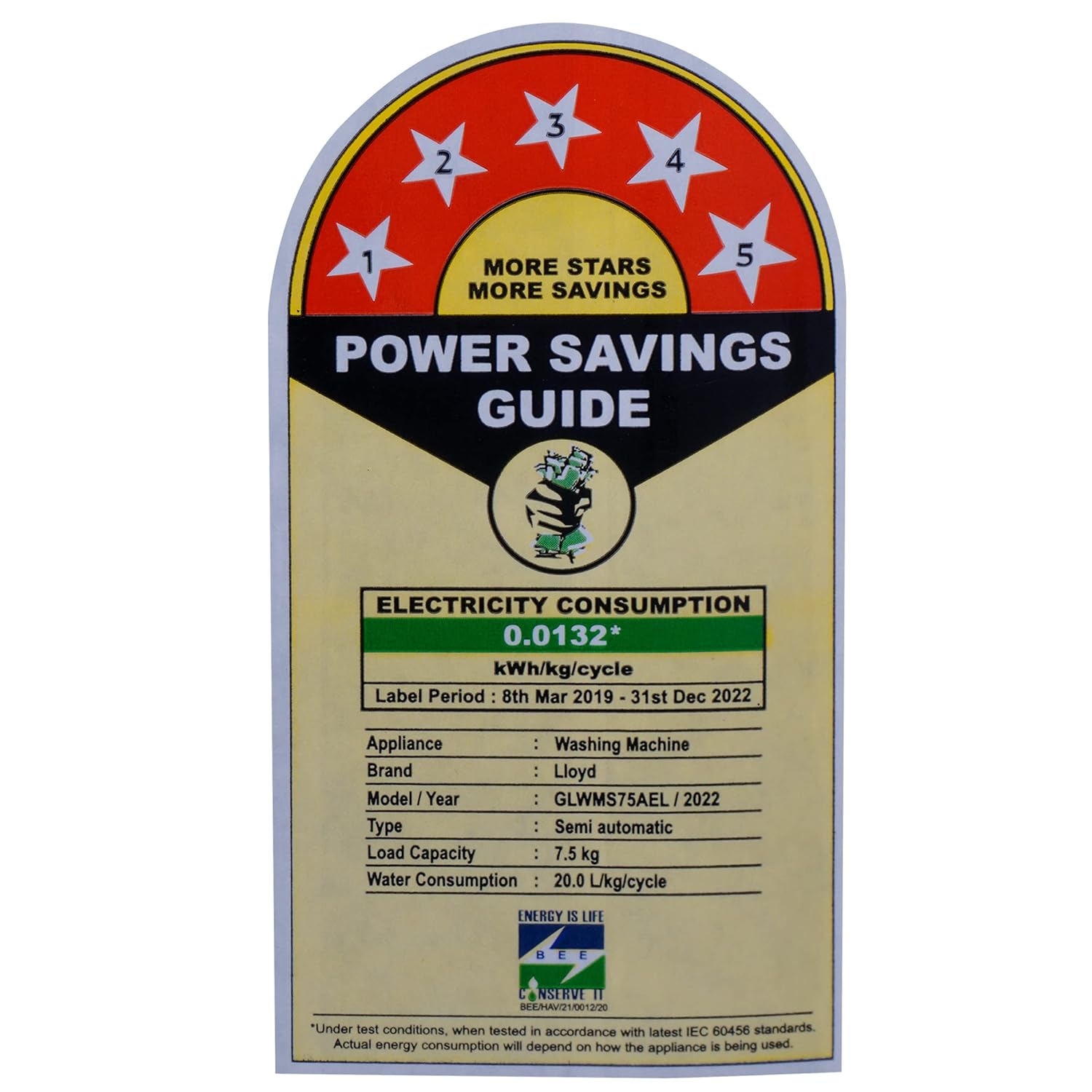 Lloyd 7.5 Kg 5 Star Semi-Automatic Top Load Washing Machine (GLWMS75ANGEL, Black & Yellow, Active Soak)